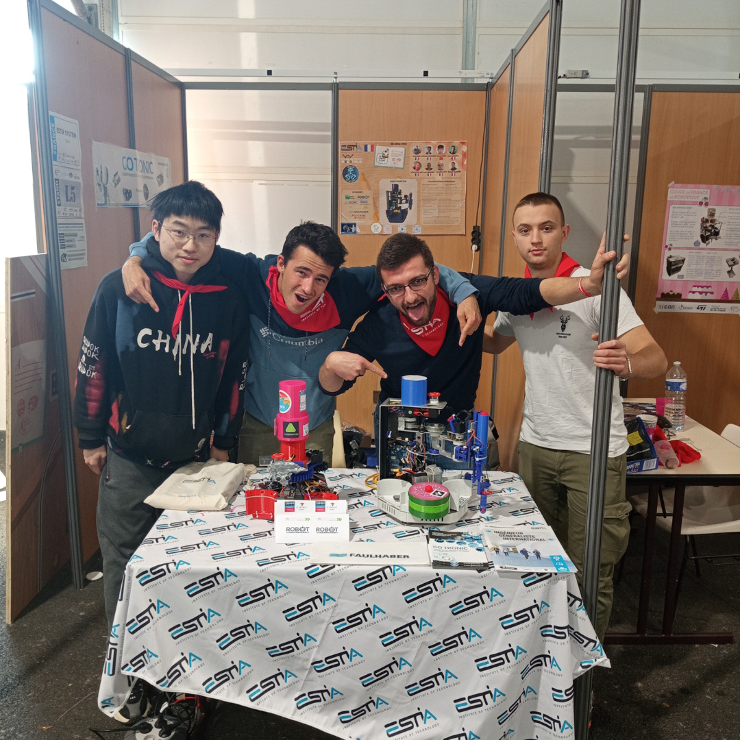 La Coupe de France de Robotique 2023 (We R tech) est terminée ! Du 17 au 20 mai , l'association Estia System a pris part à cette compétition, présentant fièrement deux robots d'exception. Après quatre jours d'intenses efforts et avec très peu de sommeil, notre robot principal a participé à trois matchs, tandis que notre robot secondaire a brillé lors du dernier match. Quelle aventure mémorable pour toute l'équipe ! Nous tenons à exprimer notre profonde gratitude envers nos précieux sponsors : Faulhaber,E-Konbini ,Gotronic, Robot maker, Filimprimante3D, BNP Pariba sans qui cette compétition n'aurait tout simplement pas été possible. Votre soutien nous a permis de relever ce défi. Nous souhaitons également adresser un grand merci à Jonathan Quilles pour son aide tout au long de la compétition. La Coupe de France de Robotique restera à jamais gravée dans nos mémoires, nous rappelant les moments intenses et les défis relevés.